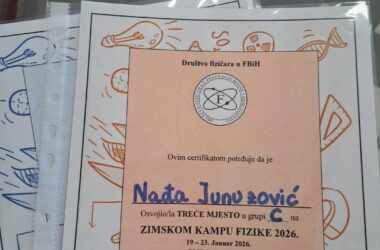 1 min Konjic Nada Junuzović osvojila treće mjesto na Zimskom kampu fizike u Sarajevu Učenica trećeg razreda medicinske škole (Srednja škola Konjic) iz Konjica, Nađa Junuzović, ostvarila je izuzetan uspjeh na Zimskom… Redakcija26/01/2026 Otvori