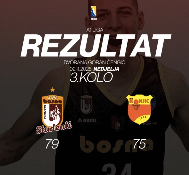 U okviru A1 lige Košarkaškog saveza Bosne i Hercegovine, u sportskoj dvorani „Goran Čengić“ na Grbavici, ekipa KK Bosna Studenti savladala je KK Konjic rezultatom 79:75.