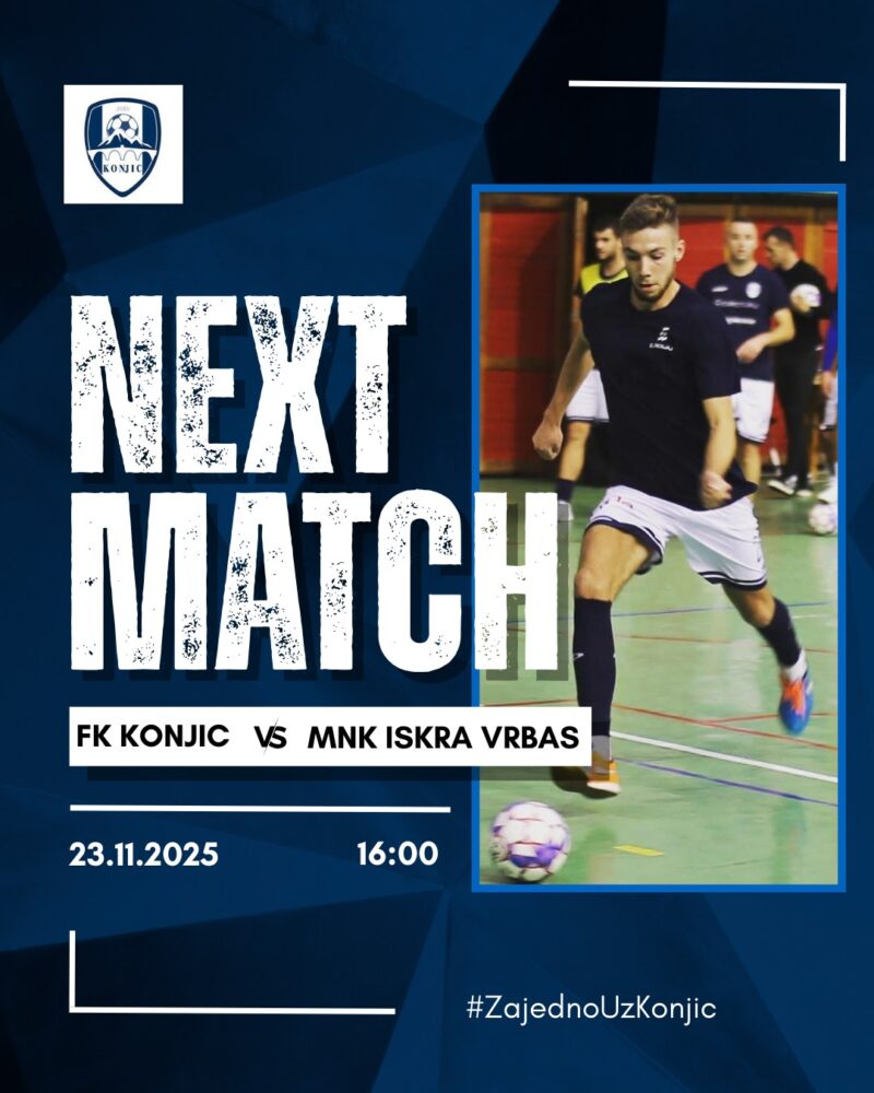Nakon teškog gostovanja u Čitluku, futsaleri FK Konjica vraćaju se na svoj teren odlučni da se vrate na pobjedničke staze. U okviru 3. kola Druge futsal lige FBiH – grupa 3, Konjičani će u nedjelju, 23. novembra 2025. godine, ugostiti ekipu MNK Iskra Vrbas. Duel je zakazan za 16:00 sati u Sportskoj dvorani Konjic.
