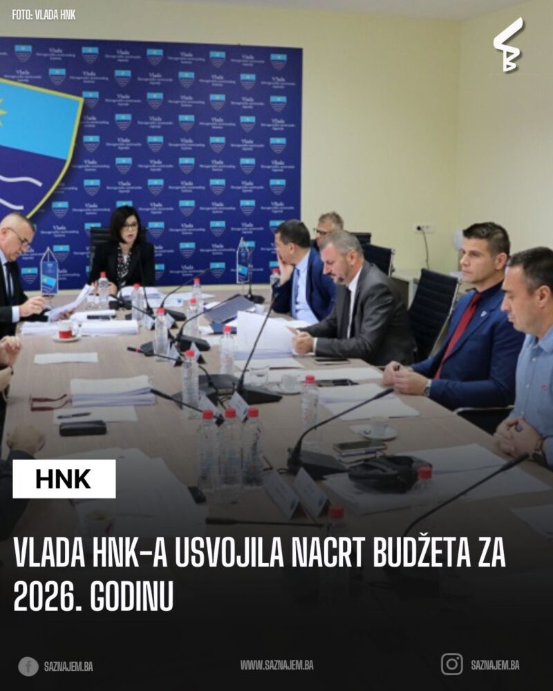 Vlada Hercegovačko-neretvanskog kantona je na današnjoj sjednici usvojila Nacrt budžeta HNK-a za 2026. godinu u iznosu od 429.990.424,00 KM, kao i Nacrt Zakona o izvršenju Budžeta za 2026. godinu. Oba su dokumenta upućena u redovnu skupštinsku proceduru. Prihvaćeni su izvještaji o izvršenju Budžeta HNK-a za period od 1. januara do 30. septembra tekuće godine te o izvršenju Tekuće rezerve za isti period.