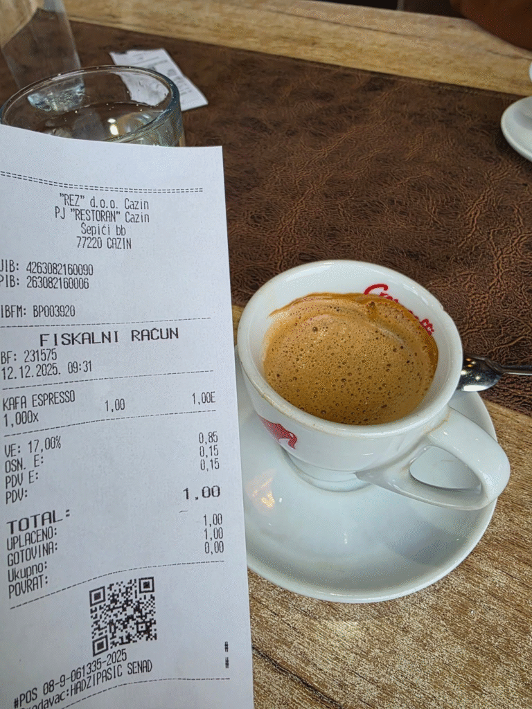 Fotografija računa iz jednog cazinskog restorana, na kojem jasno stoji cijena od 1,00 KM za espresso, privukla je veliku pažnju građana. U doba poskupljenja i različitih “novih cjenovnika”, ovakve slike postaju pravo osvježenje.
