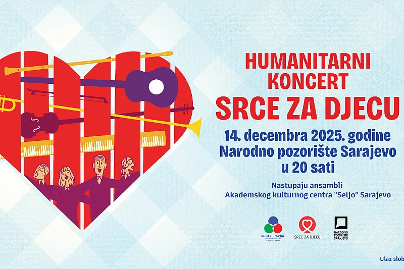 Akademski kulturni centar “Seljo” Sarajevo, u partnerstvu sa Udruženjem “Srce za djecu oboljelu od raka” i Narodnim pozorištem Sarajevo, najavljuje humanitarni koncert “Srce za djecu”, koji će se održati 14. decembra s početkom u 20 sati u NPS-u.