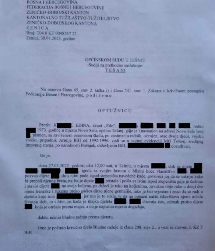 Jedan takav slučaj datira iz 2022. godine, a tek je sada, nakon tri godine došao na sud. Naime, kako saznaje “Dnevni avaz”, potvrđena je optužnica protiv Edina Kotorića (1973.) iz Novog Sela, općina Tešanj, koji je počinio bludnu radnju nad djevojčicom koja je 2022. godine imala samo sedam godina.