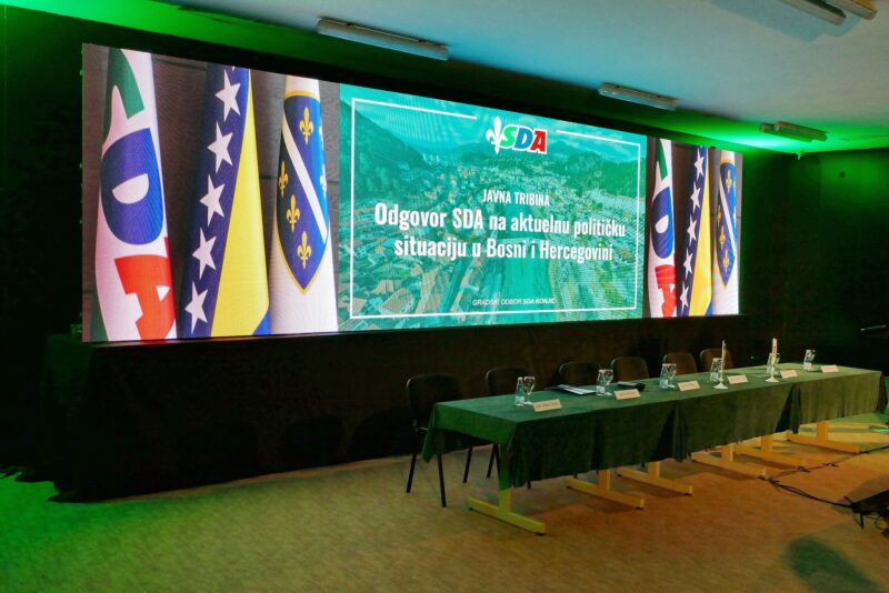 Javna tribina održana je u okviru redovnih političkih aktivnosti SDA i bila je prilika za obraćanje stranačkih zvaničnika i susret sa građanima Konjica.