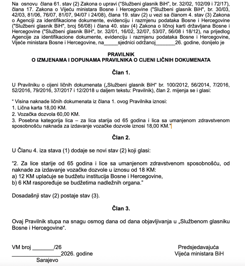 U procuduru su puštene izmjene i dopune Pravilnika o cijeni ličnih dokumenata, saznaje Fokus. Ovaj pravilnik uskoro bi trebao doći na sjednicu Vijeća ministara BiH na odlučivanje.