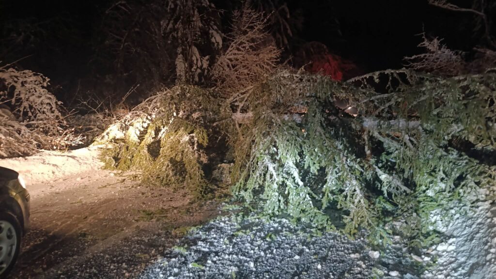 U Ajdinovićima kod Olova danas je zbog obilnih snježnih padavina palo stablo na kolovoz, što je dovelo do potpunog zastoja saobraćaja na ovoj dionici puta.