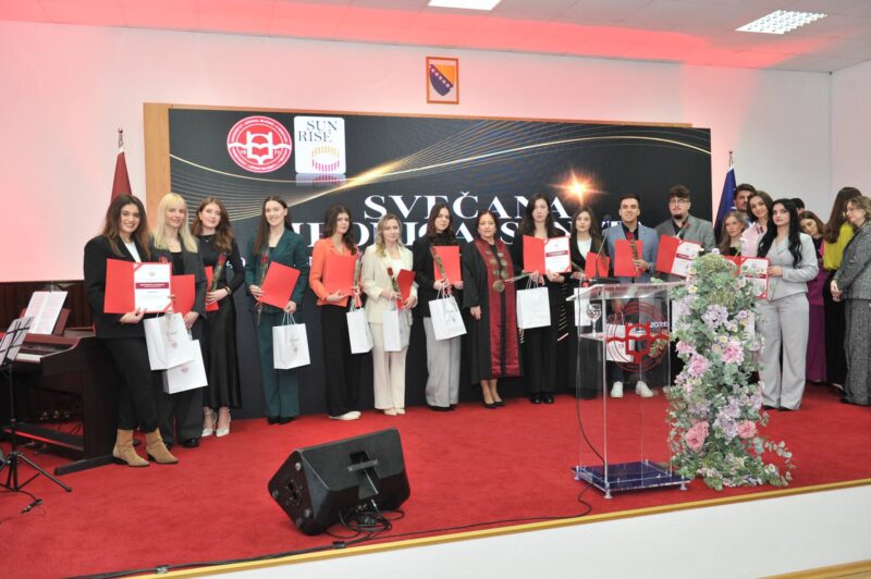 „Univerzitet nas je prepoznao, pružio nam priliku i prostor da razvijamo svoje potencijale. Naši profesori i asistenti bili su mnogo više od predavača, bili su mentori, podrška i primjer profesionalnosti. Učili su nas ne samo znanju, već i strpljenju, odgovornosti, kritičkom mišljenju i ljubavi prema onome što radimo. Na tome im dugujemo iskrenu i duboku zahvalnost. Želim svima nama da stečeno znanje uspješno primijenimo u praksi, da pronađemo posao koji ćemo raditi s ljubavlju i ponosom, da ostanemo uporni, radoznali i spremni da učimo cijelog života. Neka nam ova nagrada bude podstrek, a ne cilj, dokaz da možemo više i bolje“ kazala je studentica Ajla Džafić.