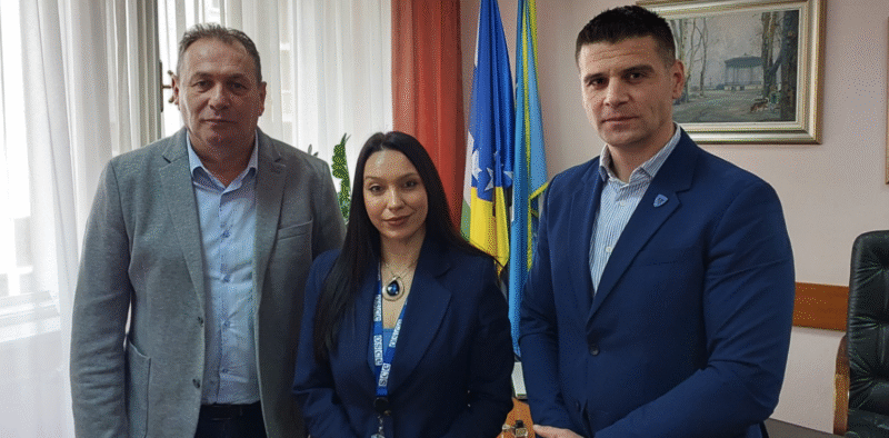 Ministar unutrašnjih poslova Hercegovačko-neretvanskog kantona Marijo Marić i komesar Uprave policije Robert Perić primili su 9. februara 2026. godine u službeni posjet šeficu Ureda OSCE-a u Mostaru Juliju Vitanovu.