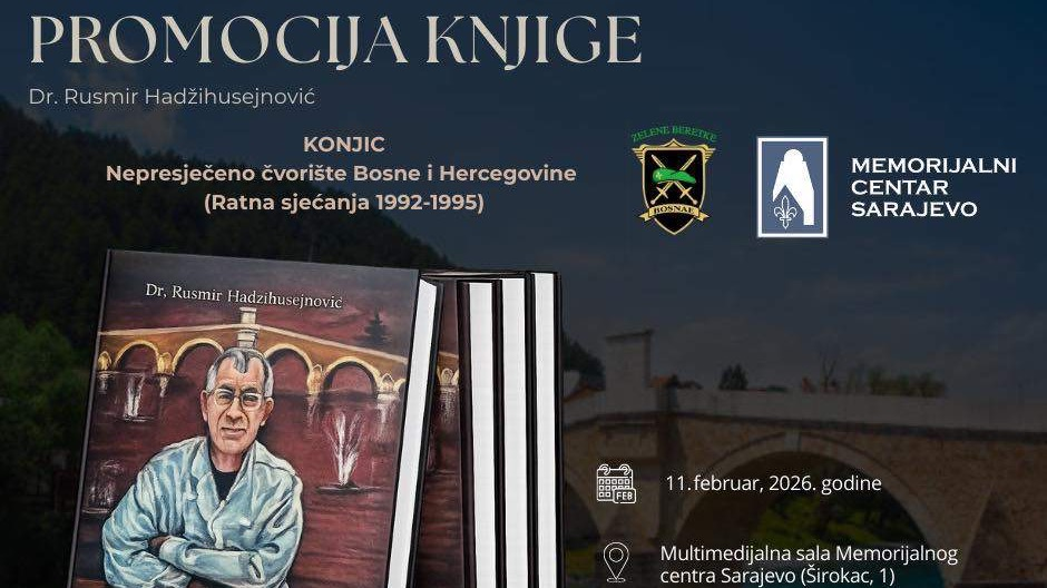 U organizaciji Udruženja „Zelene beretke“ i Memorijalnog centra Sarajevo, u Multimedijalnoj sali Memorijalnog centra Sarajevo, u srijedu, 11. februara, s početkom u 18.00 sati, bit će upriličena promocija knjige „Konjic – nepresječeno čvorište Bosne i Hercegovine“, autora prim. dr. Rusmira Hadžihusejnovića.