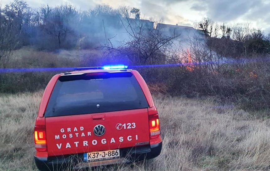 Na području Mostara zabilježena su dva požara. U Podveležju i u mjestu Humi Lišani je gorjela trava i nisko rastinje.