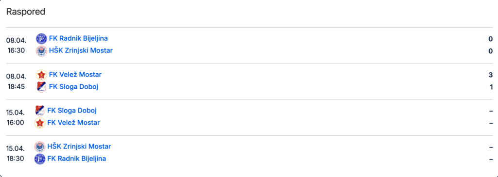 Drugi duel igra se od 18:30 sati Pod Bijelim Brijegom, a tu će Zrinjski dočekati ekipu Radnika.