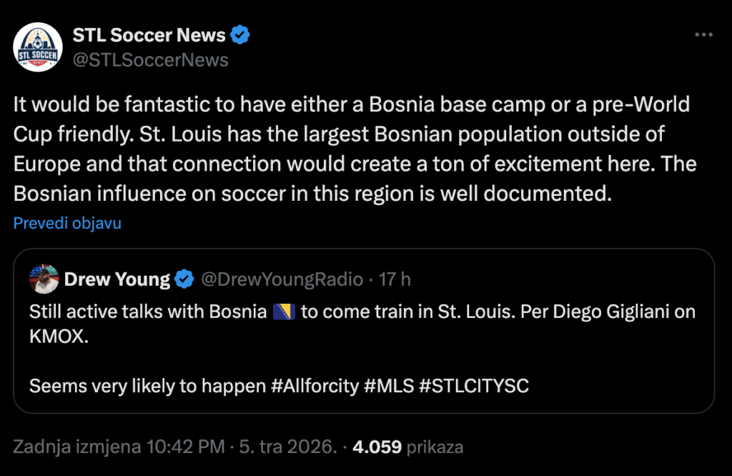 Kamp BiH uoči Mundijala bi trebao biti u St. Louisu, grad čini sve kako bi dočekao Zmajeve