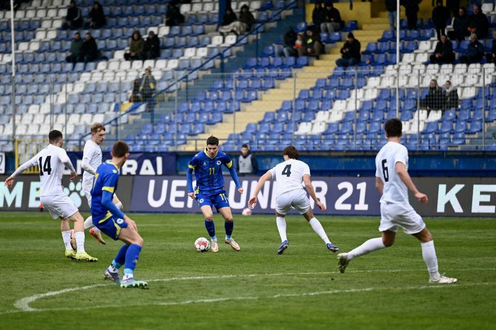 Mlada nogometna reprezentacija Bosne i Hercegovine je u petom meču kvalifikacija za Evropsko prvenstvo za igrače do 21 godine danas na Grbavici odigrala neriješeno 0:0 sa selekcijom Slovenije.
