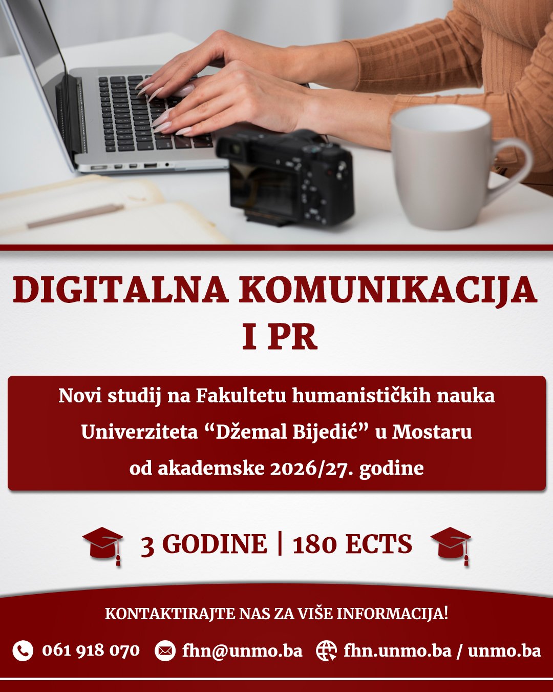 Na Univerzitet Džemal Bijedić u Mostaru od akademske 2026/27. godine bit će pokrenut novi studijski program „Digitalna komunikacija i PR“, prvi ovakve vrste na javnim univerzitetima u Bosni i Hercegovini.