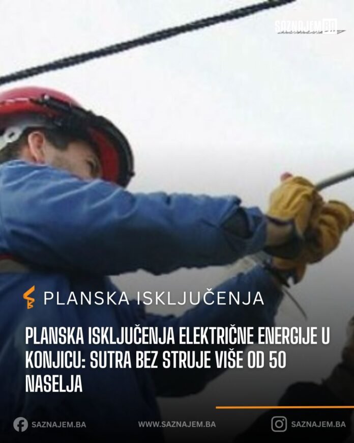 Elektrodistribucija ED Mostar obavještava građane da su planirana isključenja električne energije u velikom broju naselja na području općine Konjic sutra, 29. aprila 2026. godine.