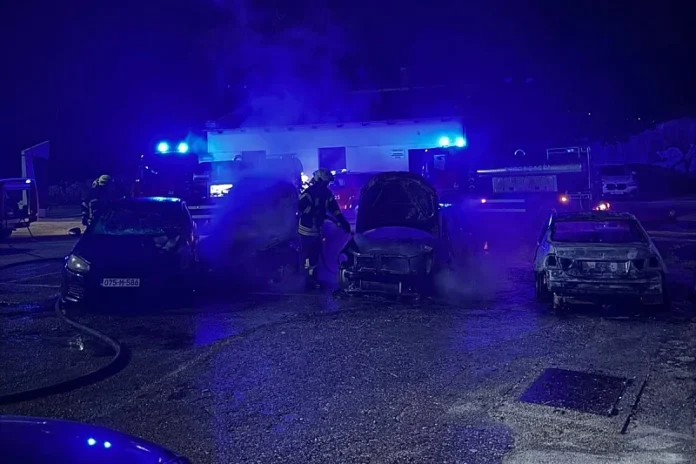 U dvorištu Srednje ekonomske škole u mostarskom naselju Konak izgorjelo je šest automobila.
